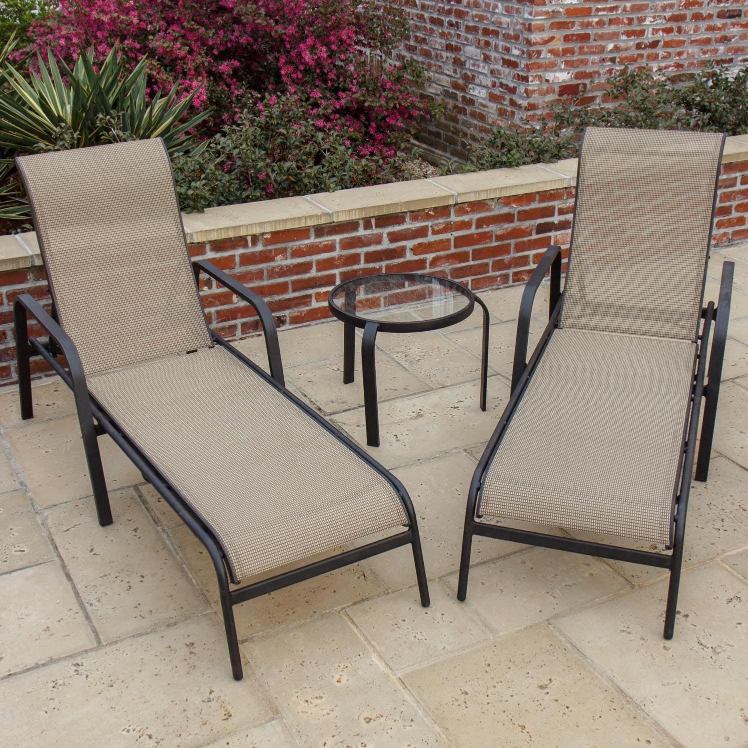 Madison Bay 3 Piece Sling Patio Chaise Lounge Set With Glass Table By Lakeview Outdoor Designs